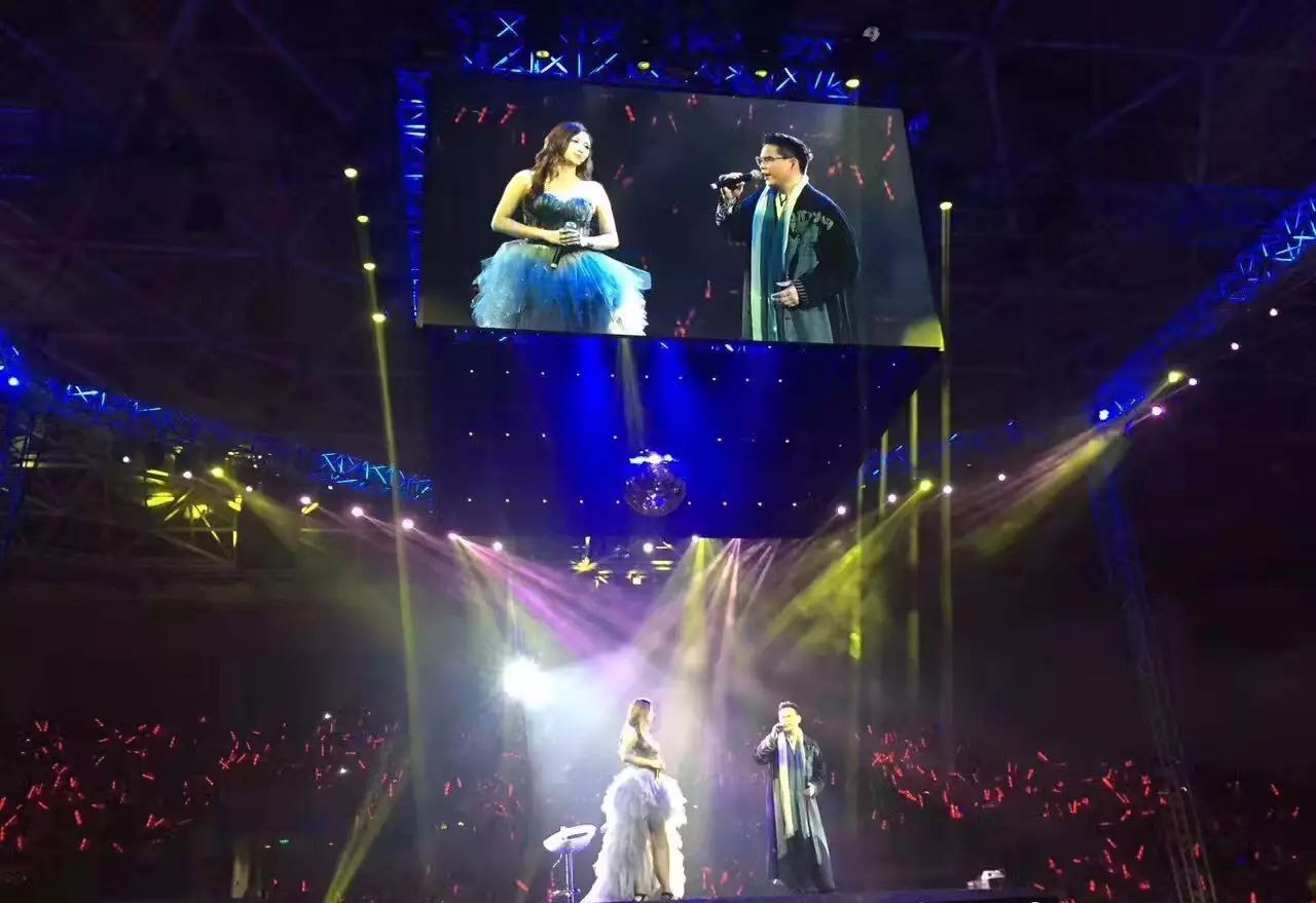 音樂會高潮部分非蘇永康和李霞兒深情對唱一首《從來不喜歡孤單一個人》莫屬了。李霞兒一身淺灰色長裙驚艷全場,盡顯女神風范!